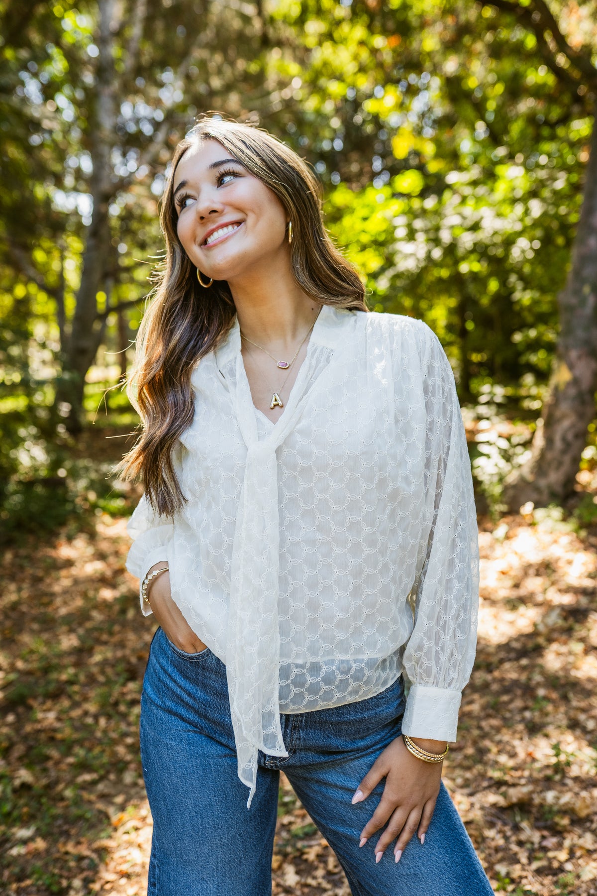 Rainne Long Sleeve Blouse W/ Neck Bow Tie
