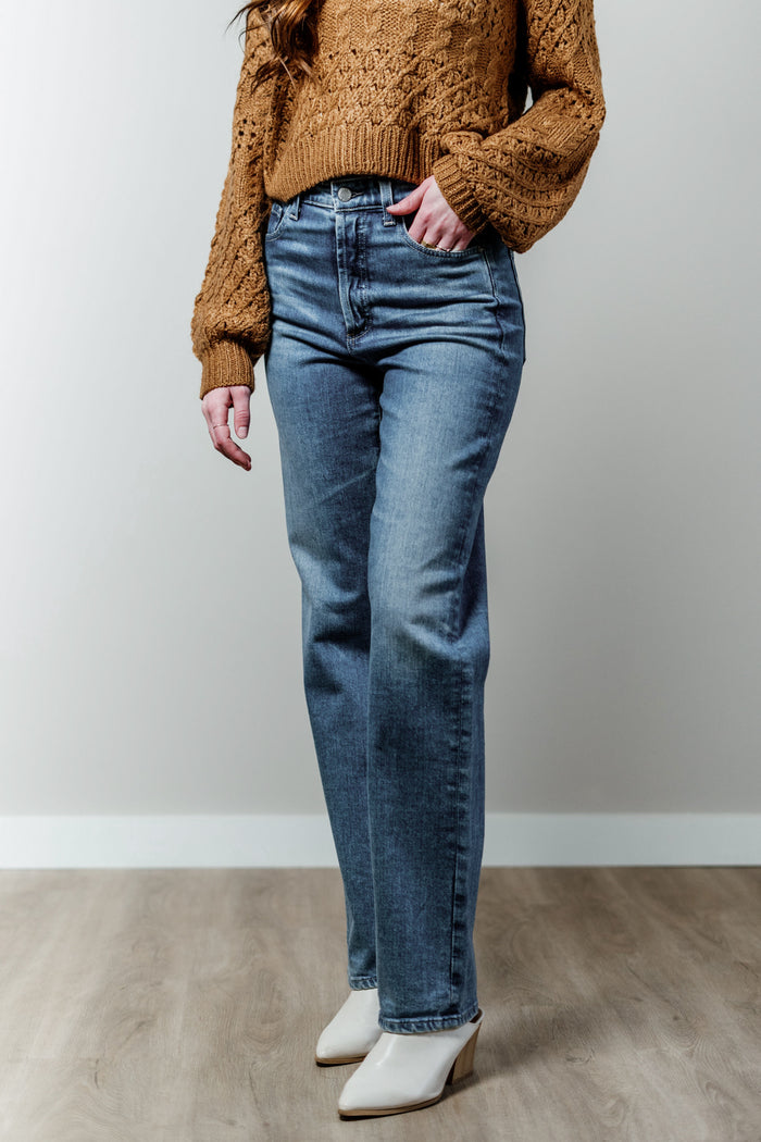 Stitched W/ Love Embroidered Mid Rise Bowed Straight Leg Jeans