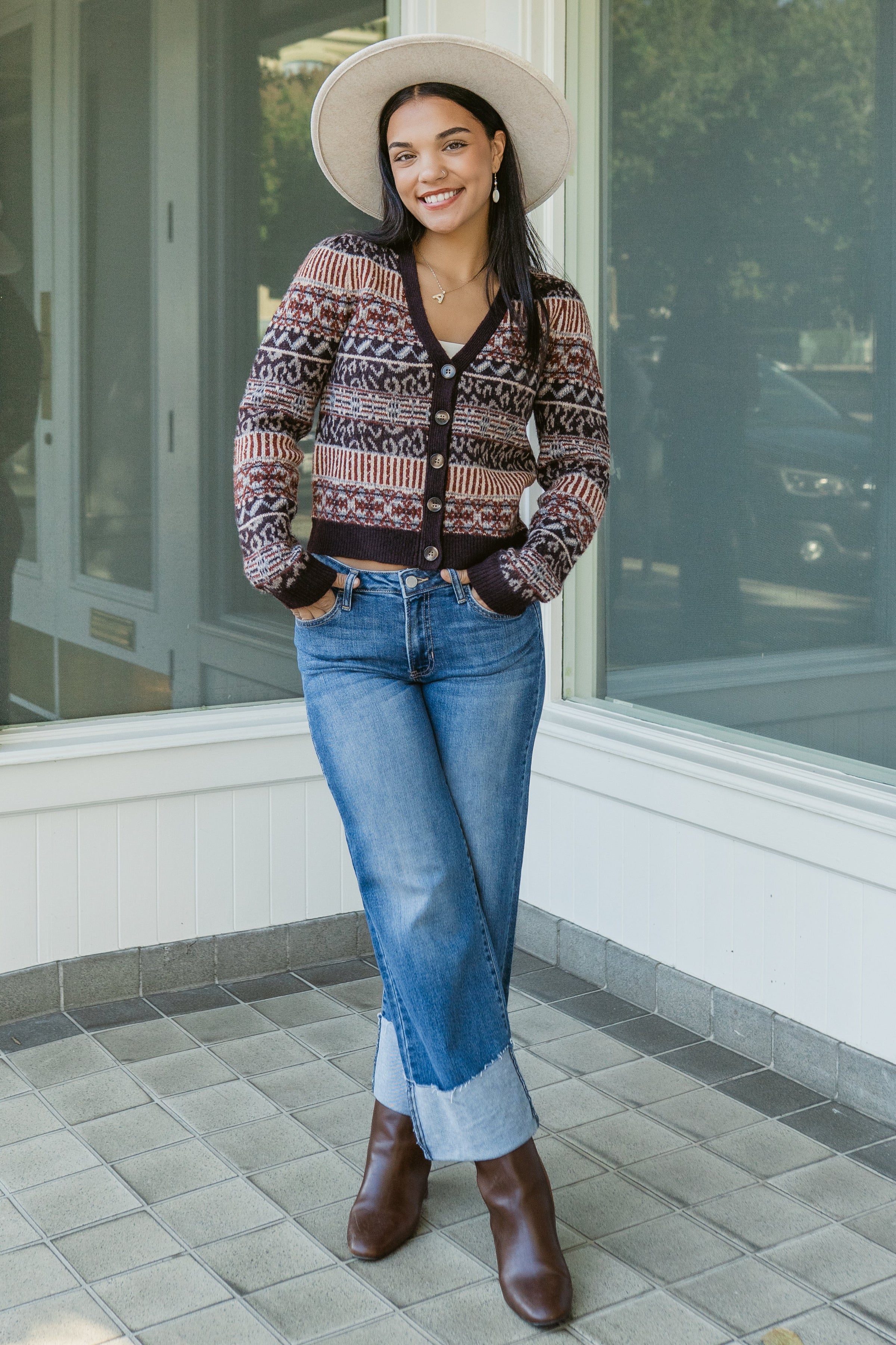High Rise Scissor Cut Cuffed Slim Wide Leg