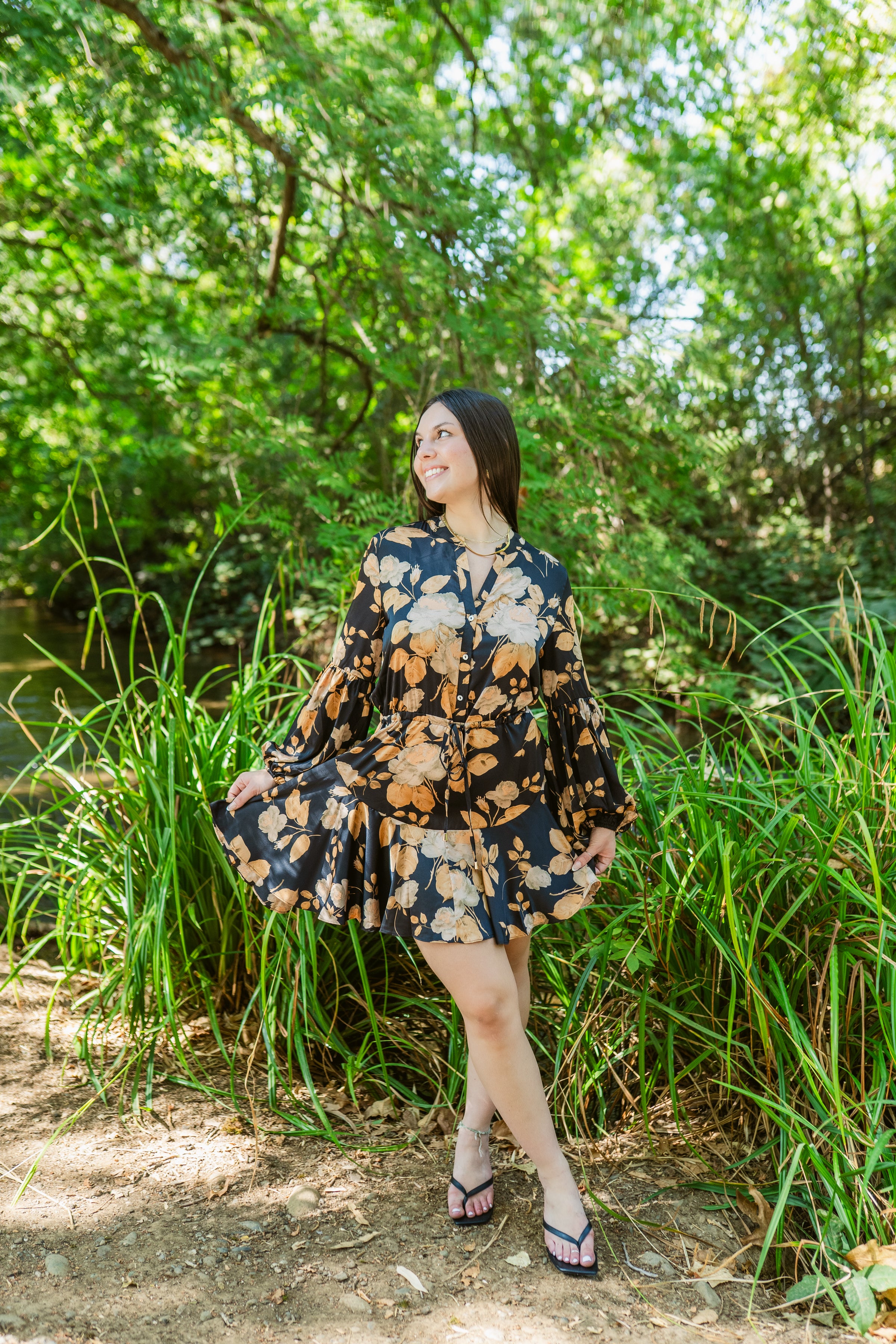 Gilded Garden Button Down Mini Dress W/ Tie Waist