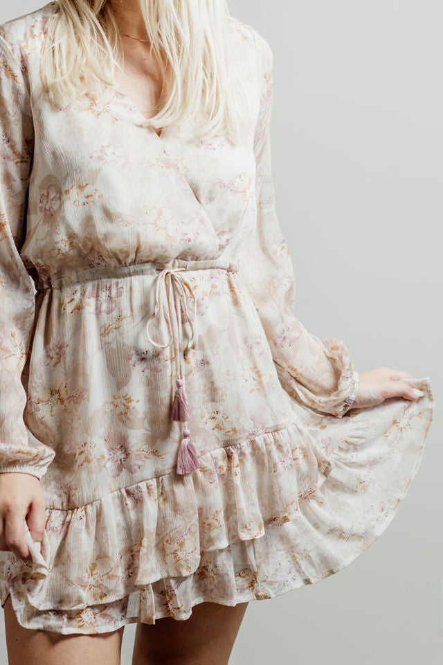 Clearance - Floral Puff Sleeve Button Detail Mini Dress
