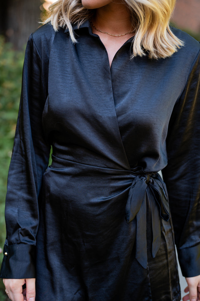Long Sleeve Collar Front Wrap Satin Romper