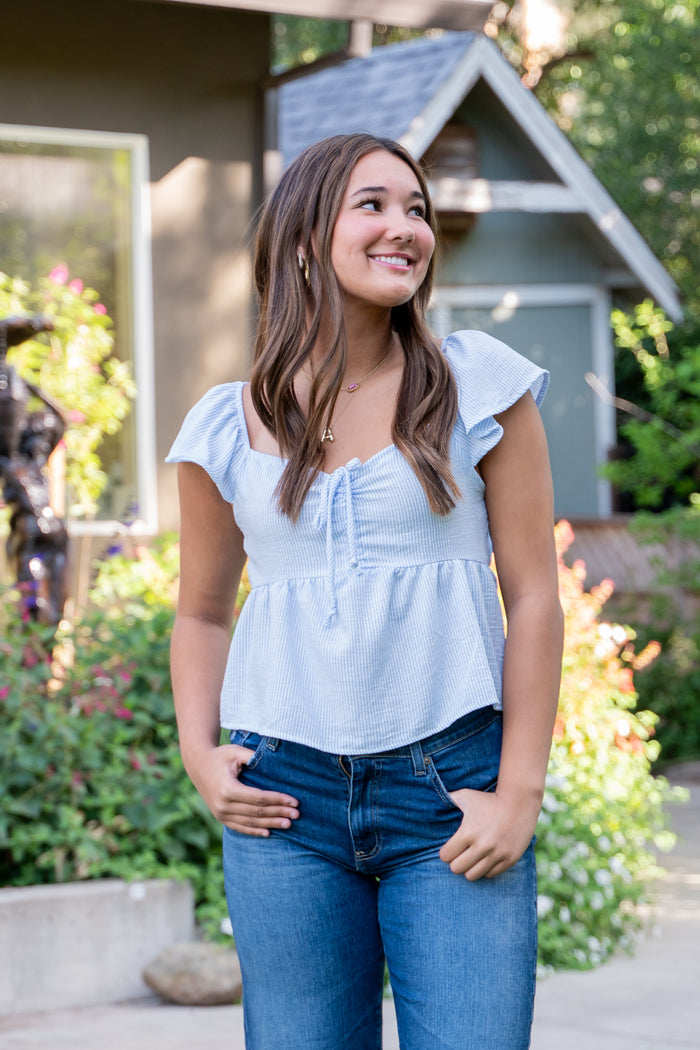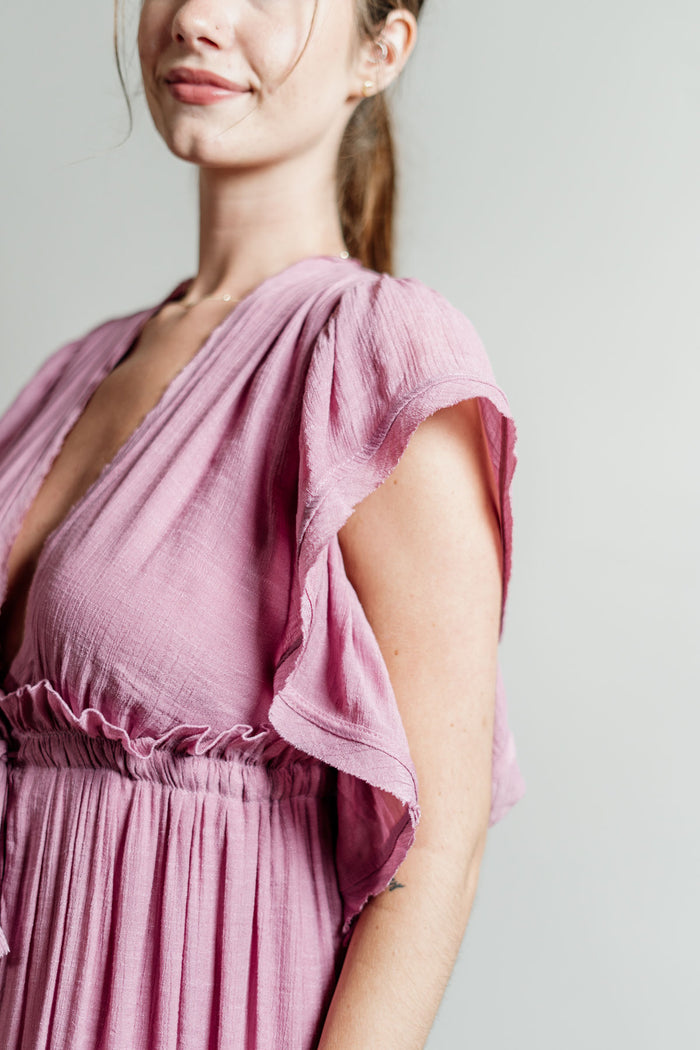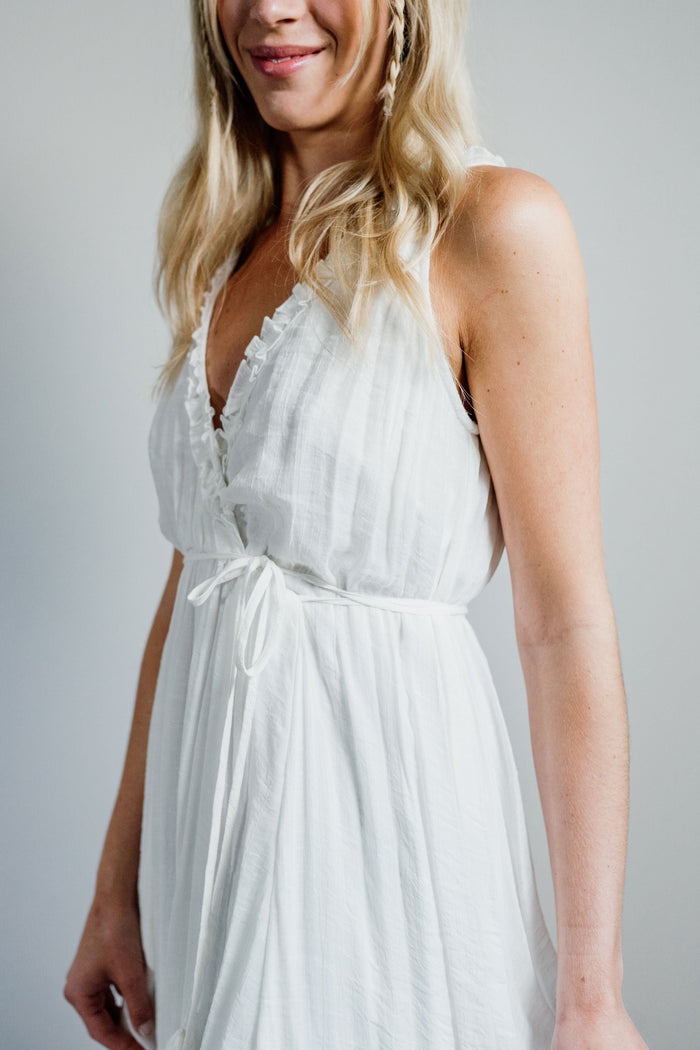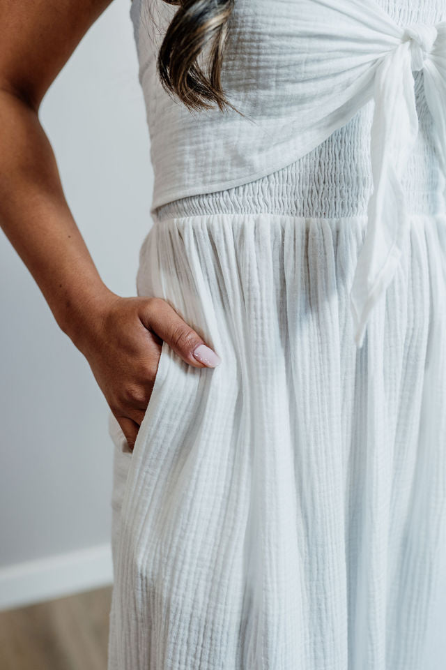 CLEARANCE - Linen Tie Back Ruffled Romper