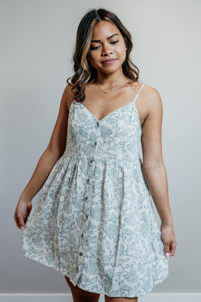 Clearance - Floral Puff Sleeve Button Detail Mini Dress
