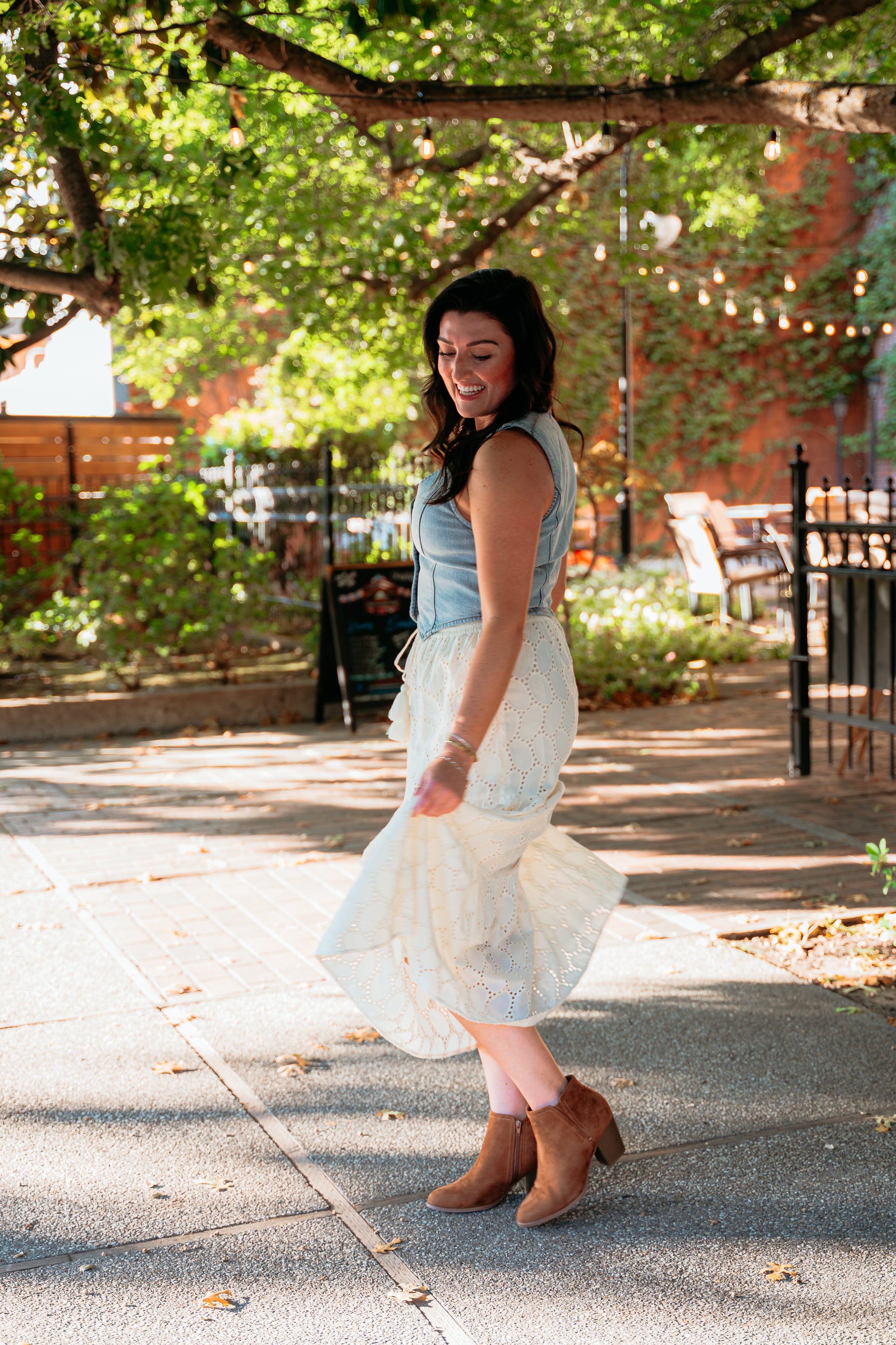 Sway to the rhythm of western charm in our Cowboy Songs Eyelet Maxi Skirt. This floor-sweeping beauty combines delicate eyelet detailing with prairie-inspired design, perfect for music festivals or sunset strolls.