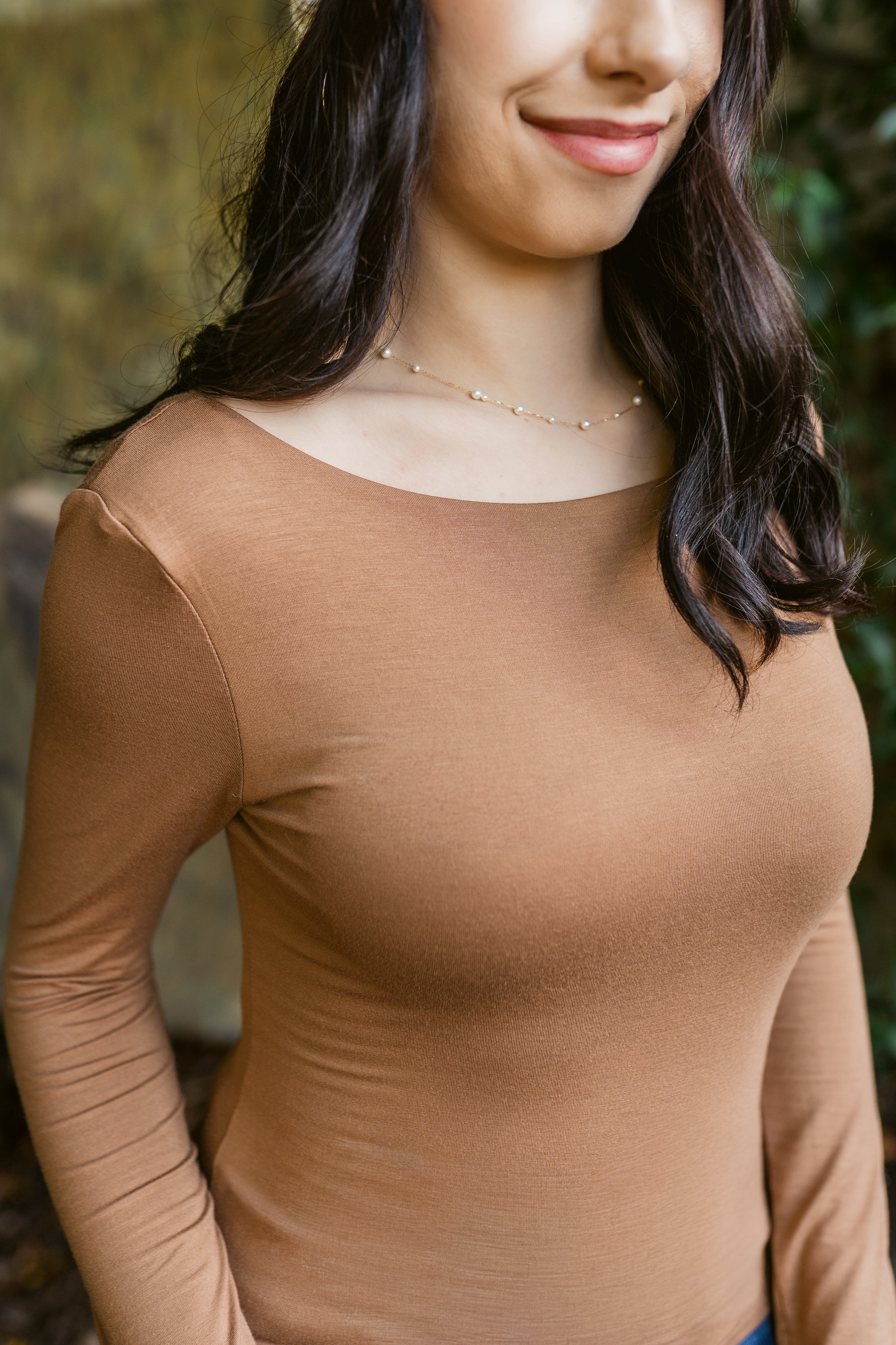 Stay comfortable and classic in our Low Back Moment Long-Sleeve! Crafted with a cozy blend of 92% Rayon and 8% Spandex, this effortless top will become a wardrobe staple. Enjoy the style and ease of this look - it's perfect for any occasion!
