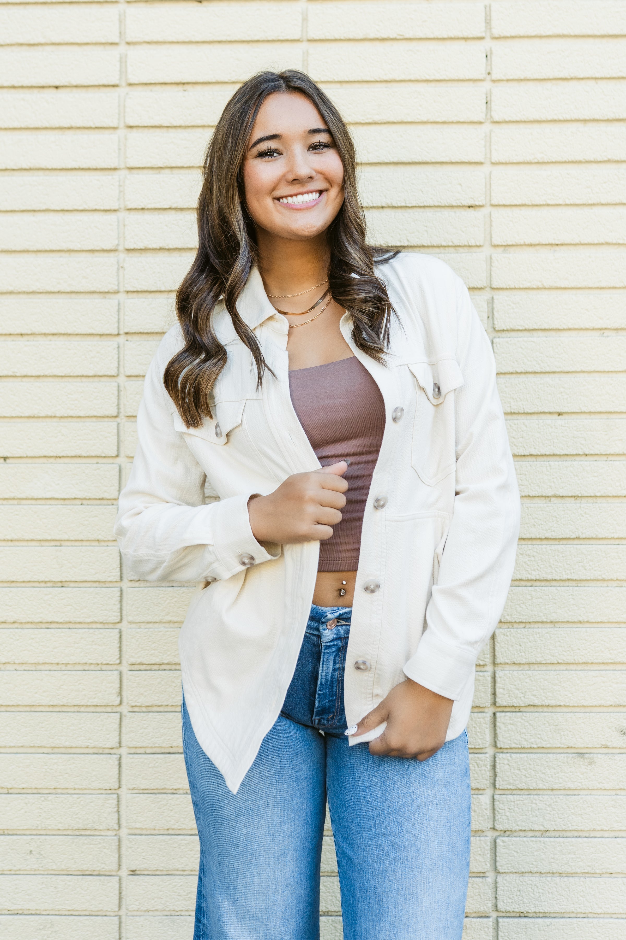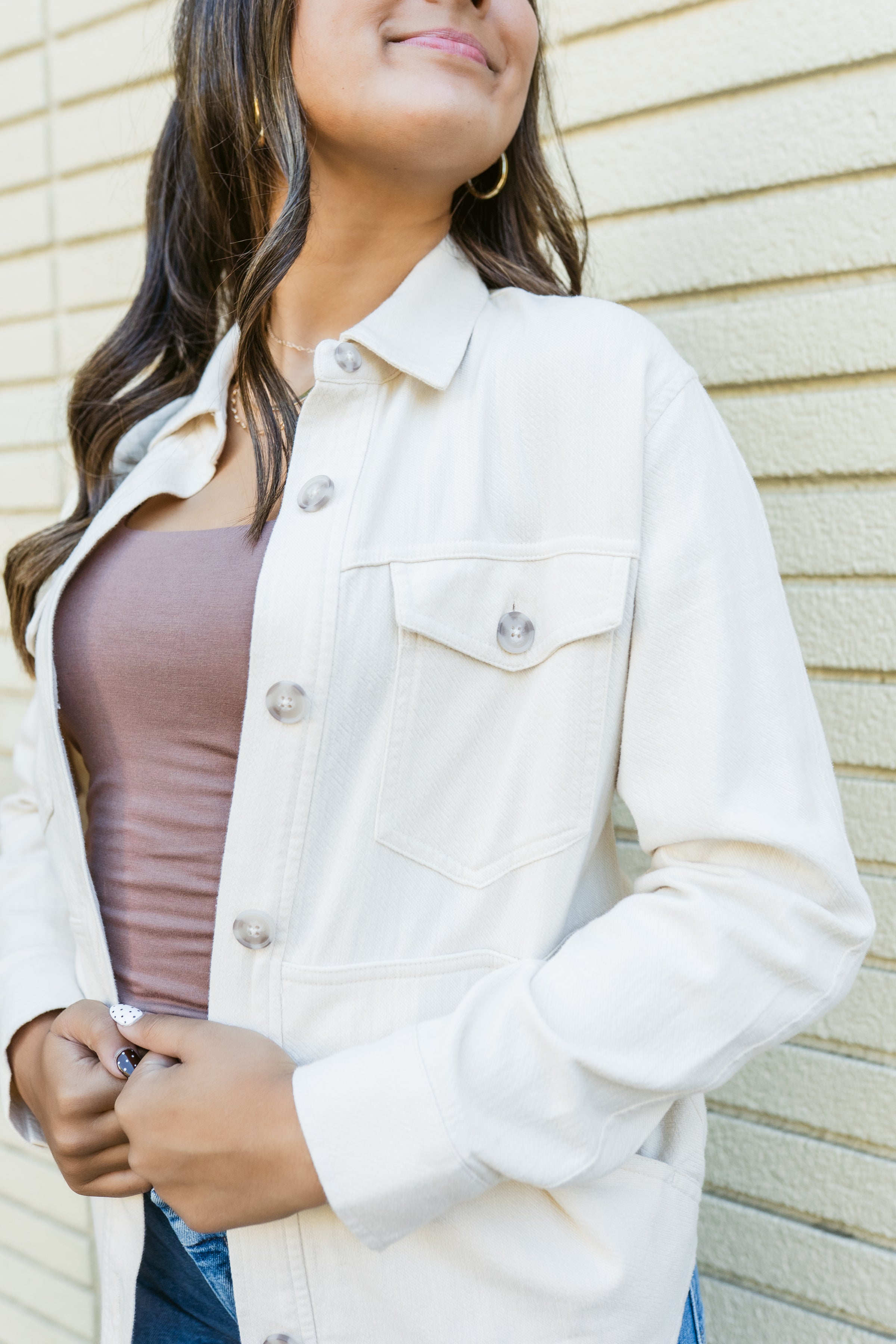 Introducing the Nicholson Shacket from Gentle Fawn! Made from 100% cotton, this shacket (shirt/jacket hybrid) offers both style and comfort. Perfect for any casual look, this shacket is your new go-to piece. (You'll be feeling fierce and fashionable, while still keeping it cozy.) It comes in two beautiful colors: Pecan and Cream.