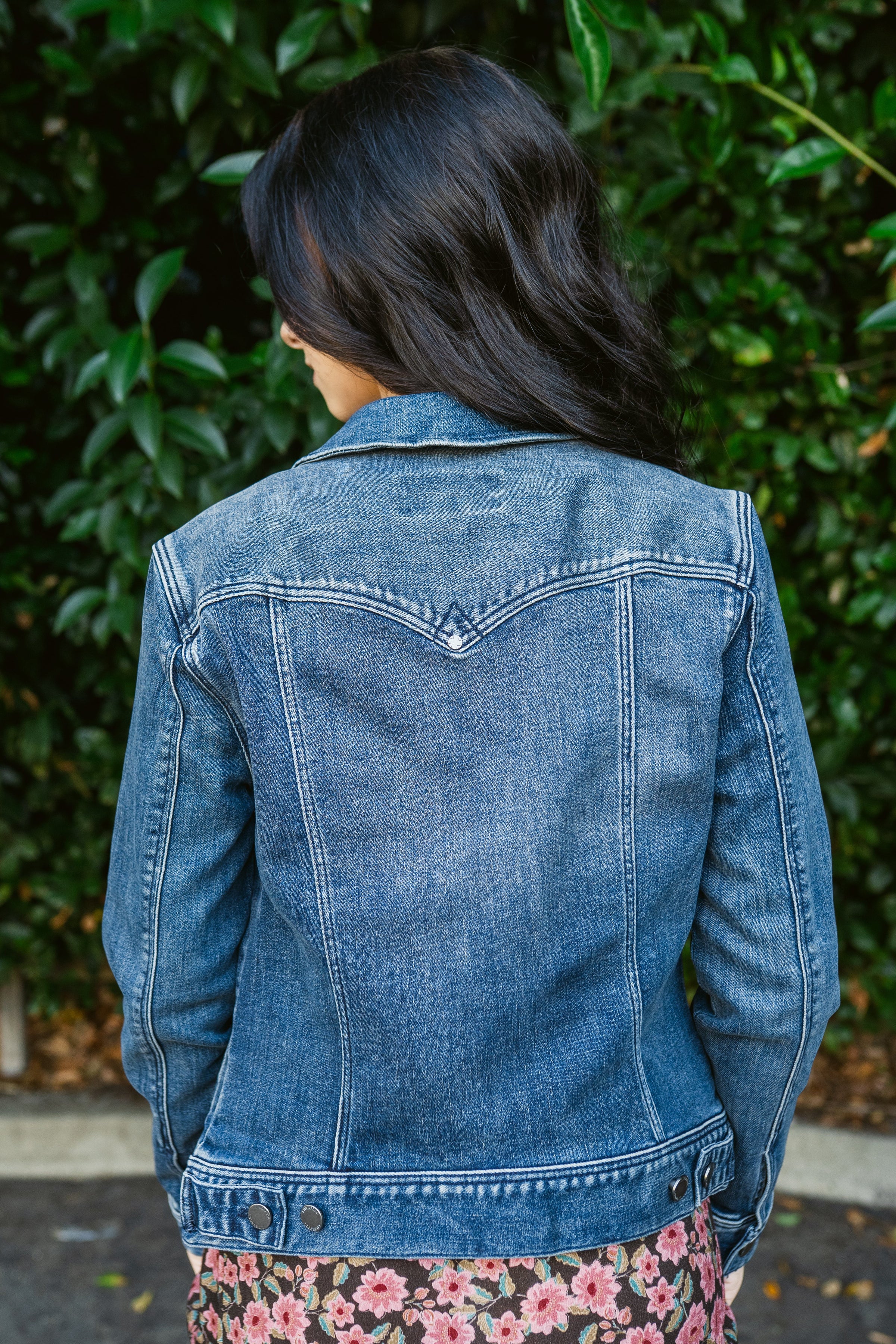 Throw on denim! This denim jacket features a button-down front, gold detailing, and cuffed sleeves. Layer this sturdy jacket over every outfit this fall. Our "Staple Jean Jacket" will keep you stylish every season! Made of 69% Cotton, 29% Polyester, 2% Elastane.