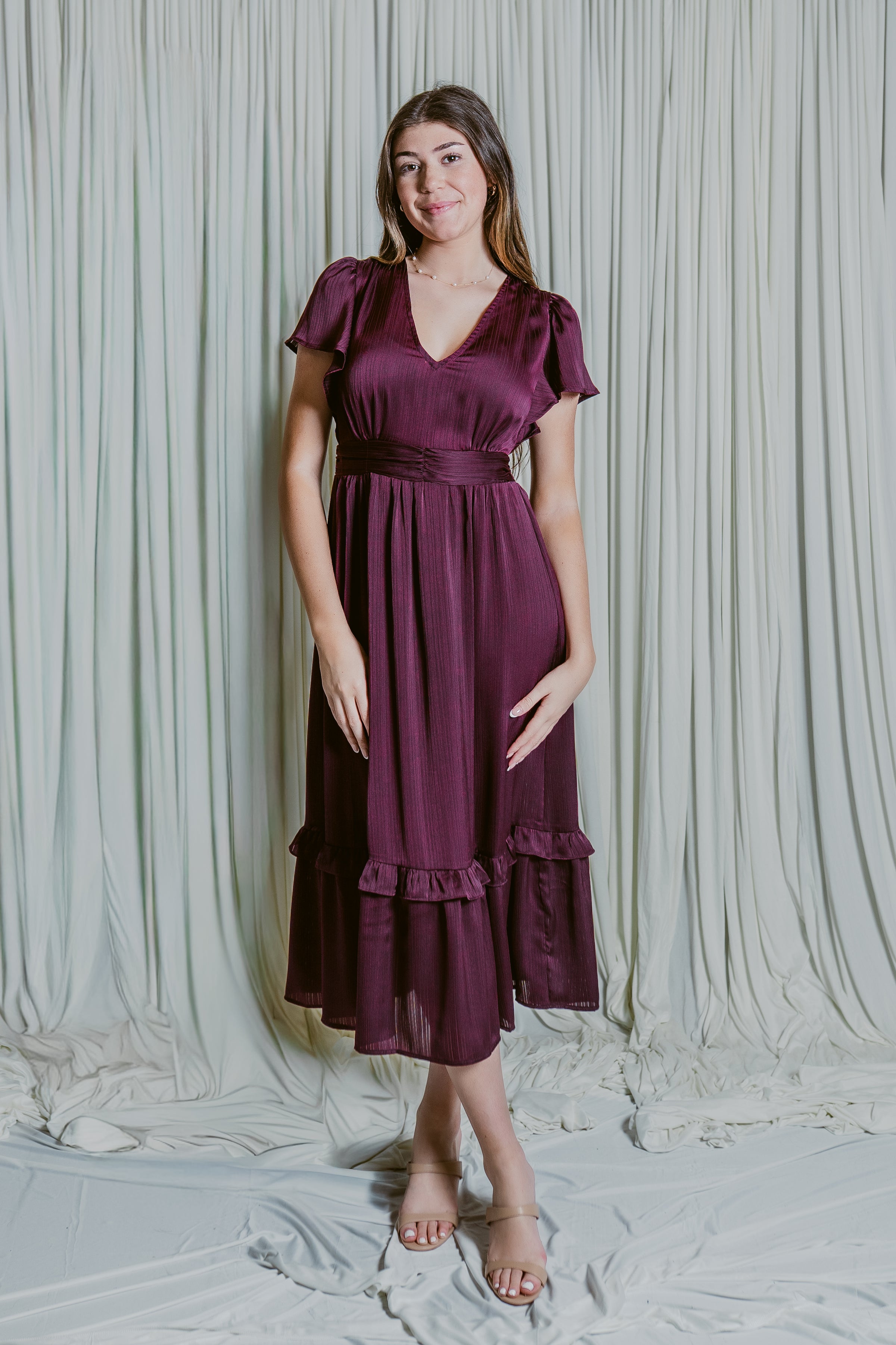 Elevate your everyday wardrobe with this sophisticated midi dress, designed for effortless elegance. The classic silhouette is enhanced by delicate ruffle detailing that adds movement and visual interest without compromising refinement. Perfect for transitioning from day to evening, this versatile piece pairs seamlessly with minimalist accessories or layered pieces. The midi length offers timeless appeal while the thoughtful ruffle accents ensure you stand out with understated style. A wardrobe essential that balances comfort with polished sophistication.