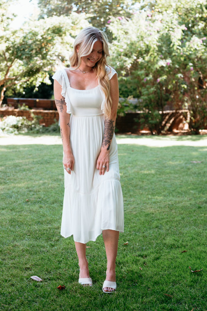 Quinn Midi Dress W/ Lace Trim & Back Ties