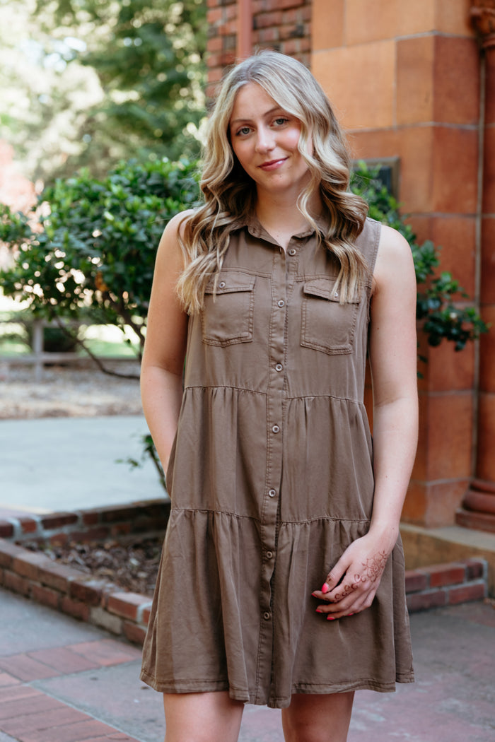 CLEARANCE - Colette Sleeveless Button Down Tiered Mini Dress