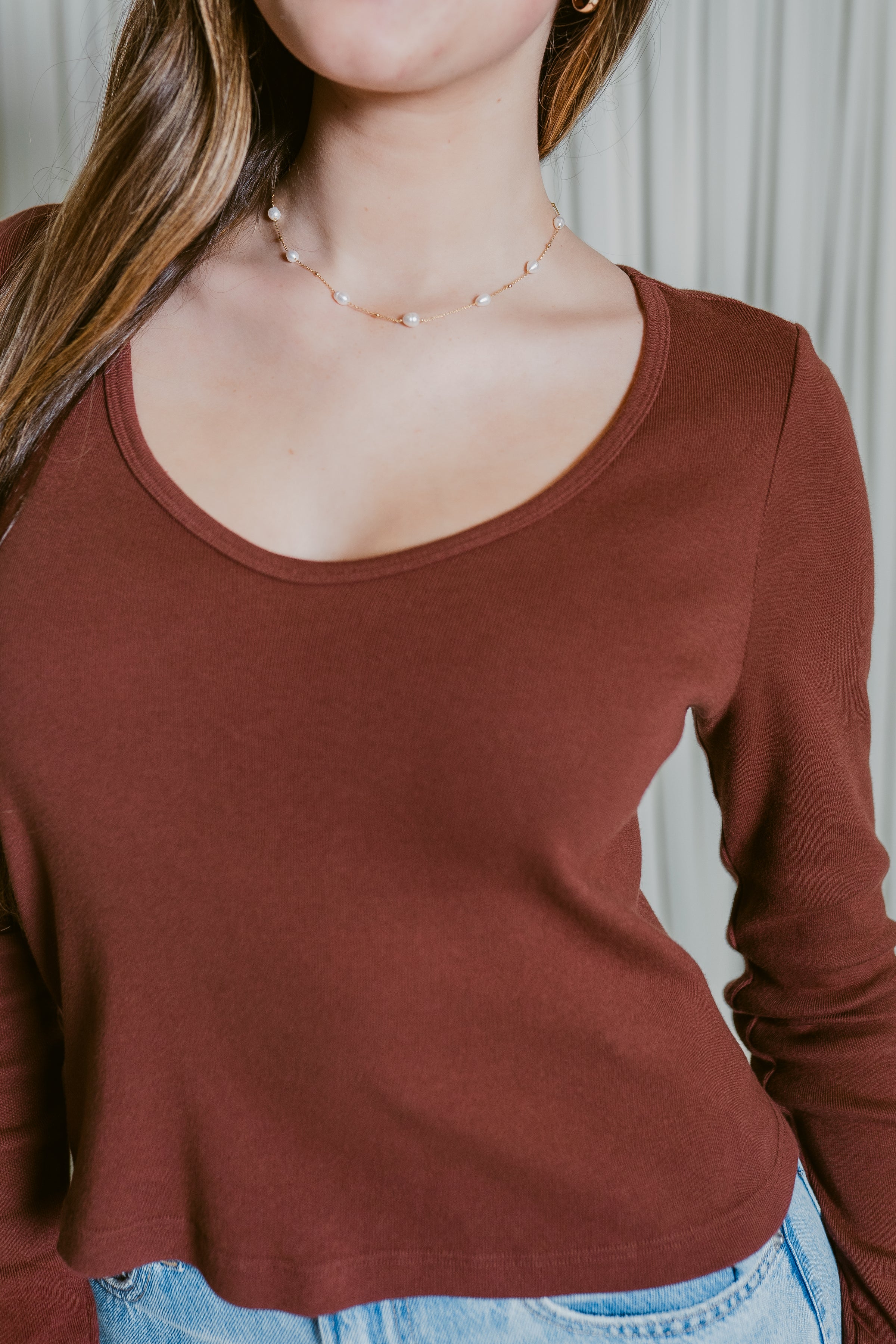 Effortless elegance meets everyday comfort in the Lizzie Long Sleeve V-neck Tee. This versatile staple features a flattering V-neckline and smooth long sleeves, making it perfect for layering or wearing solo. Crafted for all-day wear, it transitions seamlessly from casual weekends to polished weekday looks. A wardrobe essential that works as hard as you do.