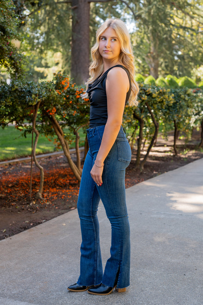 Wynne Mid Rise Denim Skirt W/ Crossover Buttons