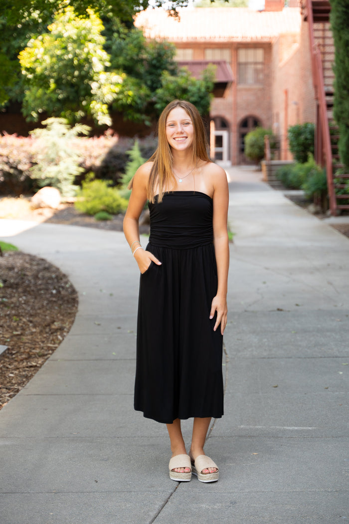 Strapless Ruched Cropped Jumpsuit W/ Pockets