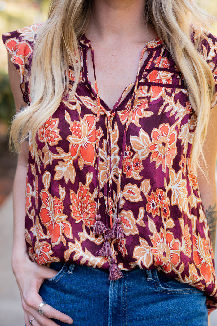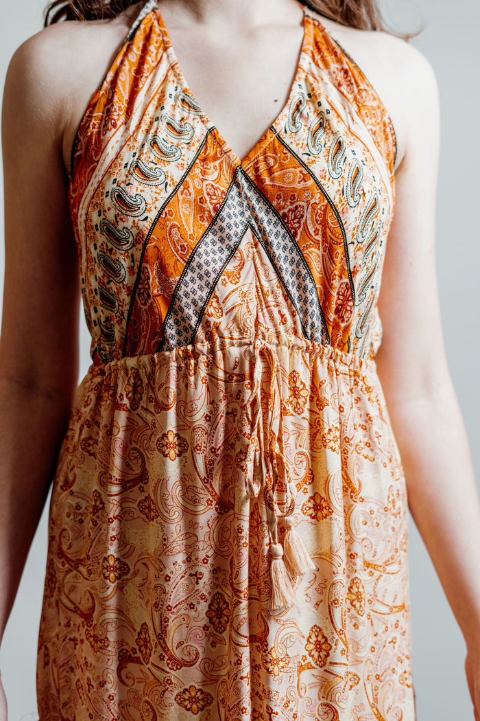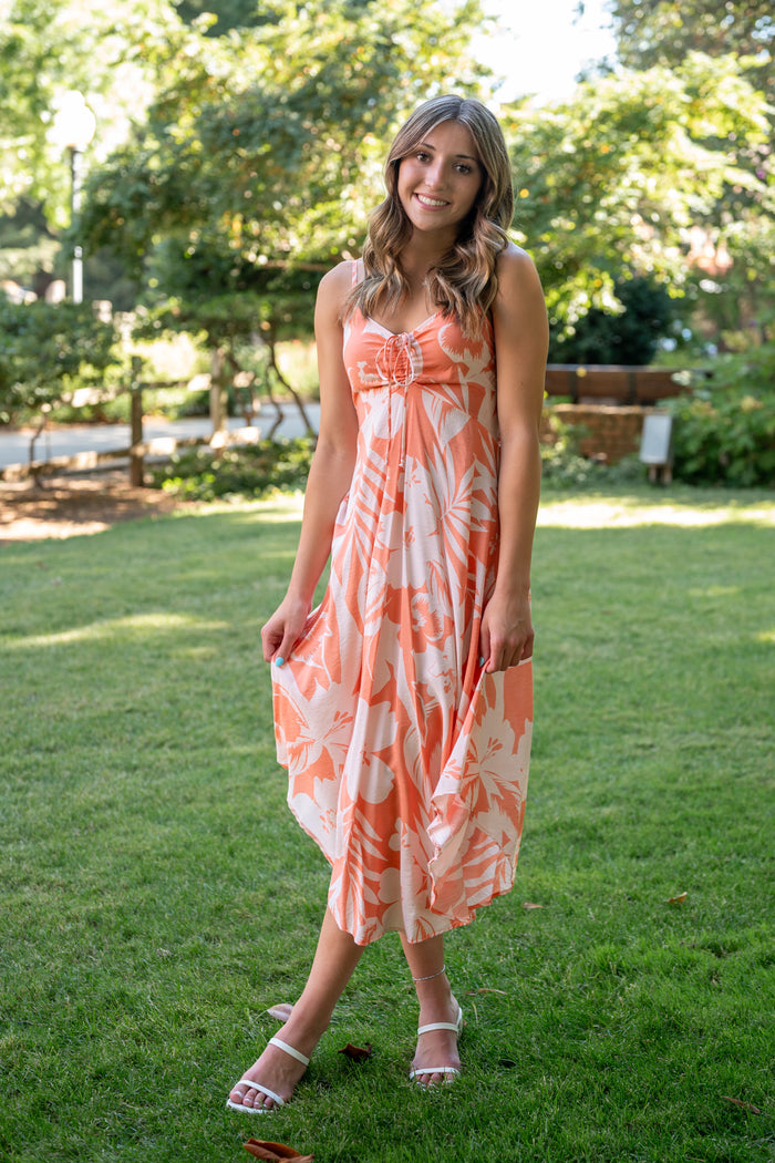 Hibiscus Flower Chest Ruched Round Hemming Midi Dress